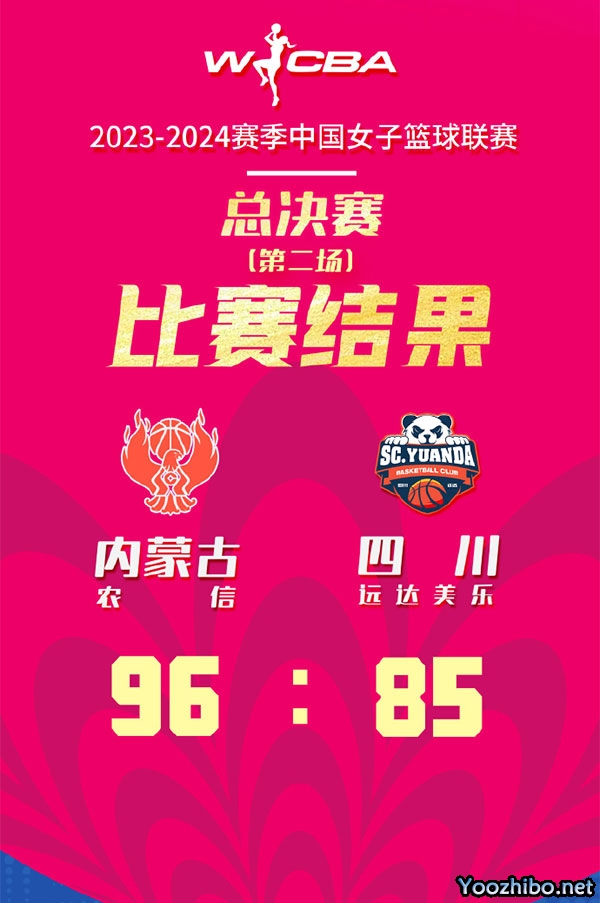 24直播网讯 4月13日 WCBA总决赛,内蒙古农信主场继续迎战四川远达美乐,首场比赛内蒙古末节崩盘0-1暂时落后四川。比赛开始,琼斯上来就里突外投连砍8分帮助内蒙古建立主动权,四川连续攻击内线止血,但内蒙古在琼斯带领下还能回应,孙梦然三分一度领先到双位数,次节双方展开拉锯战,坎贝奇接连内线强打8-0追到仅差1分,但张绮芳和孙梦然接连3记三分止血,李缘接连抛投帮助内蒙古一波8-0半场领先12分。下半场,李梦终于拿到首个运动战进球得分,王思雨三分命中后潘臻琦也能强势回应,双方展开拉锯战,琼斯接连内线强打后坎贝奇高举高打还能回应,三节内蒙古领先13分,末节潘臻琦上来就中三分,韩旭和坎贝奇接连内线取分回应,坎贝奇击到张茹再吃违体被驱逐,李梦和韩旭接连三分再追分,琼斯强打2+1稳住双位数领先,最终内蒙古96-85力克四川,总比分扳成1-1。