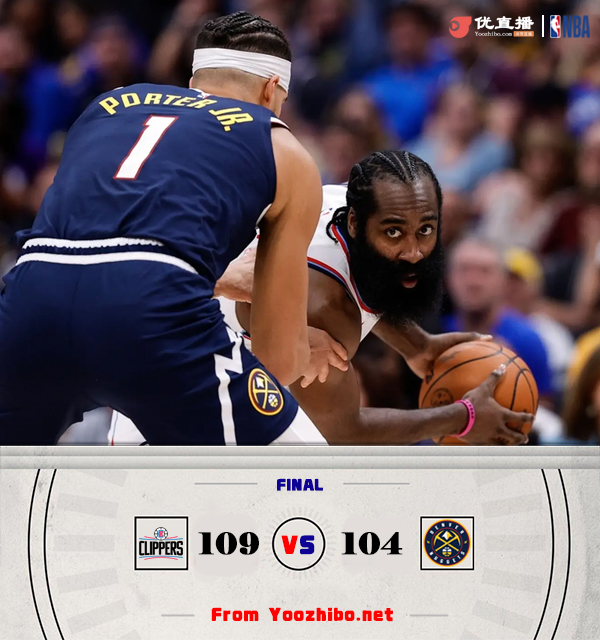 24直播网10月27日讯 NBA常规赛,掘金主场迎战快船,首场比赛两队都吃到了开门黑。比赛开始,快船上来很是慢热,哈登先串联球队首节就送出7助攻,而掘金依然靠约基奇撑起进攻,双方展开拉锯战,哈登外线开和,首节快船领先8分,次节威少接连误攻,快船连续反击一波14-0直接拉开比分,约基奇连续外线发炮,掘金连续4记三分强势回应,半场掘金追到差6分。下半场,穆雷开始接连远投发挥,约基奇上篮一度追平比分,哈登继续喂饼祖巴茨,双方展开拉锯战,布劳恩反击反超比分,三节掘金反超1分,末节约基奇连续外线发炮砍下11分帮助掘金扩大领先,但鲍威尔里突外投连砍15分强势咬住,比赛进入白热化,鲍威尔关键三分再次追平,掘金关键挑战失败哈登两罚领先,约基奇关键追平罚篮丢一个后绝平三分又不进,最终快船109-104险胜掘金,拿到首胜的同时送对手连败。