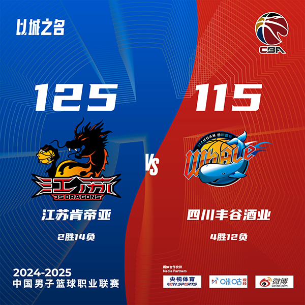 24直播网讯北京时间12月11日讯 CBA常规赛,江苏主场迎战四川。江苏1胜14负,四川4胜11负。上半场,江苏率先发力打出14-6的开局,四川内外开花努力追赶,次节双方大打对攻,互相不设防,富兰克林高效输出,萨姆纳和马里奇联手带队给出回应,半场战罢江苏74-62领先四川。下半场,江苏命中率有所下降,双方围绕10分左右的分差展开拉锯战,末节关键时刻江苏稳扎稳打保持优势,四川苦苦追赶无果,最终,江苏125-115力克四川。