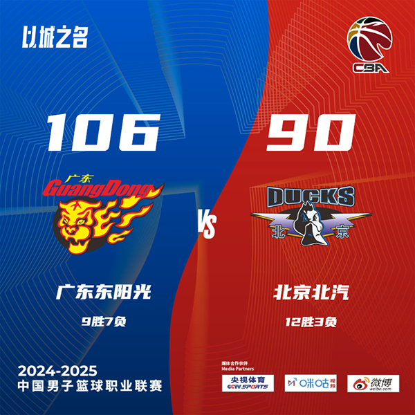 24直播网讯北京时间12月12日讯 CBA常规赛,广东对阵北京,广东上场比赛击败北控,北京则是输给山西,本场比赛胡明轩和曾凡博缺阵。开场后莫兰德和徐杰一内一外发挥出色帮助广东取得领先,北京进入状态较慢,广东接着利用外线三分将分差拉大。杰曼接连砍分努力为北京追分,黄荣奇扔进超远压哨三分。第二节上来吉伦沃特内外开花带领广东率先打出攻势,北京进攻端表现平平,场上分差一度被拉大到27分,北京半场结束前用两记三分稍稍止血。下半场回来虽然广东进攻效率下降,但北京也没能掀起有效反扑,分差始终在20分左右拉锯,最后一节北京努力追分依旧未果,最终广东106-90北京取得2连胜,北京遭遇2连败。