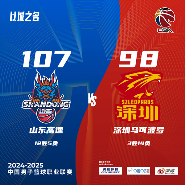24直播网讯北京时间12月13日讯 CBA常规赛,山东对阵深圳,山东上场比赛击败北控,深圳最近遭遇2连败。开场后山东率先打出攻势以7-0开局,紧接着深圳回敬一波8-0追上比分,两队陷入僵持。克里斯连续强攻篮下得手,深圳这边外援毫不示弱也连续拿分回应,依靠内线的强势发挥,山东上半场领先4分。下半场,两队经过短暂的僵持后,依旧是山东率先打出攻势一度建立起11分优势,但随后深圳立马掀起反扑又将比分追上。第四节山东再次掀起攻势建立领先,这次他们没有给深圳追上比分的机会,最终山东107-98击败深圳取得2连胜,深圳遭遇3连败。