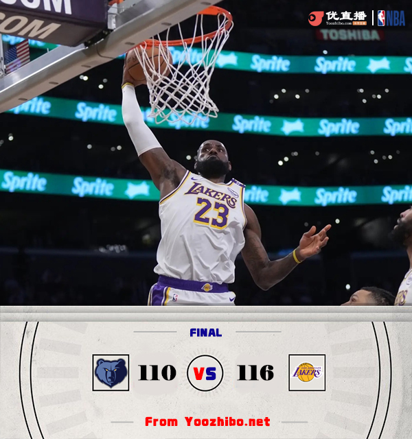 24直播网12月16日讯 NBA常规赛,湖人主场迎战灰熊,湖人近期状态不佳,近5战1胜4负;灰熊则是士气正佳,近11战10胜,目前也是经历4连胜。本场比赛詹姆斯复出。比赛开始,詹眉联手攻防建功带队打出9-2不错开局,JJJ带队追分,但浓眉内线阻挡不了,湖人接连反击再打8-0拉开双位数领先,首节湖人领先10分,次节莫兰特命中首个运动战进球带队追分,湖人继续发力10-0拉开15分领先,JJJ苦苦支撑,浓眉继续发力带队一度领先到20分以上。下半场,双方围绕着20分左右分差展开拉锯战,浓眉内线继续取分但肩膀受伤回更衣室,灰熊趁机打出18-5攻击波追至差9分,末节浓眉归来连续中投砍下7分稳住局势,JJJ和八村塁相继6犯毕业,湖人能保持住10分左右领先,最终湖人116-110力克灰熊,终结对手4连胜。