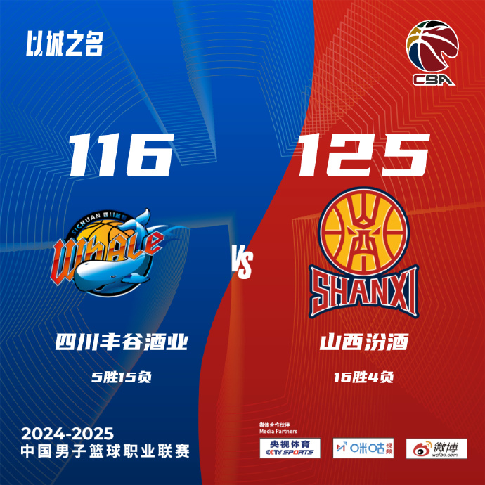 山西(16-4):迪亚洛36分12板11助5断2帽、原帅20分4板、张宁17分5板4助、古德温19分5助、贾明儒8分3助