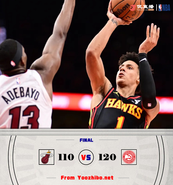 24直播网讯北京时间12月29日讯 NBA常规赛,老鹰主场迎战热火,老鹰目前16胜15负东部第7,热火则是15胜13负东部第6,两队目前都是2连胜。本场比赛,巴特勒继续缺阵。比赛开始,双方上来有来有回节奏很快,吹杨接连助攻,老鹰亨特和马修斯撑起替补,联手扔进4记三分,随后老鹰一波9-2领先7分,次节双方展开拉锯战,热火外线接连三分一度反超比分,但老鹰总是全民皆兵能回应,半场老鹰领先3分。下半场,热火上来8-2小高潮再次咬住比分,但马修斯和亨特还能接连三分回应守住领先,希罗里突外投带队继续追分,但老鹰总能回应三节领先9分,末节罗齐尔助热火继续追分,老鹰还是能回应守住微弱领先,比赛很快进入白热化,热火连续三分不中,老鹰接连走上罚球线,杰伦-约翰逊三分再中一波9-0杀死比赛,最终老鹰120-110力克热火,拿到3连胜。