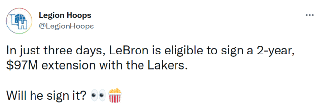 选择二,他可以和湖人提前续约一年4670万美元的合同。