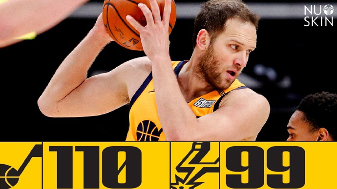 爵士(47-18):博格达诺维奇25分3篮板2助攻,戈贝尔24分15篮板2抢断3封盖,克拉克森16分6篮板5助攻2抢断,尼昂11分3篮板2助攻,英格尔斯13分9助攻,弗雷斯特9分4篮板,奥尼尔7分7篮板3助攻2抢断,费沃斯5分9篮板。