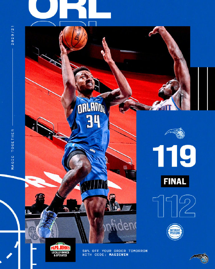 魔术(21-44):班巴22分15篮板2助攻,兰德尔18分5篮板3助攻,汉普顿16分7篮板10助攻瓦格纳10分4篮板3助攻,小卡特11分5篮板,安东尼8分4篮板4助攻,哈里斯11分,培根9分4篮板2助攻2抢断,布拉兹代基斯14分3篮板,