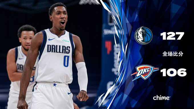24直播网3月30日讯 雷霆今日坐镇主场迎战独行侠的挑战,东契奇和波尔津吉斯伤停后双双回归。面对几乎全是新秀或者新人的雷霆,独行侠上半场优势并不明显,虽然首节他们便取得9分领先,但随着雷霆的替补阵容爆发,独行侠的优势很快被抹平殆尽,不过独行侠节末也在替补阵容的爆发中重新打开局面,小哈达威最后时刻连砍8分带队拉开比分并取得8分领先进入下半场。第三节雷霆抢开局并迅速控制比赛,东契奇联手波尔津吉斯开局连拿10分迅速确立起两位数的领先,节末独行侠虽然遭遇接近4分钟的得分荒,但雷霆没能抓住机会攻势同样不佳,独行侠感受不到任何压力并带着17分的领先进入第四节。末节开局独行侠早早杀死比赛悬念,开局一波14-4的进攻将优势拉大至27分早早锁定胜局。最终,独行侠客场兵不血刃轻取雷霆结束2连败。