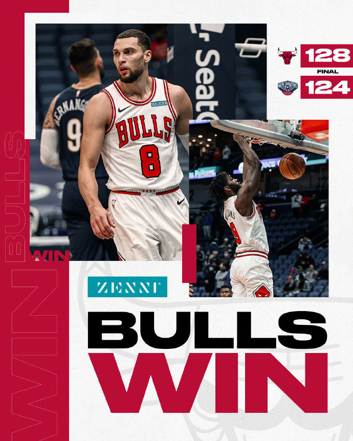 公牛(16-18):拉文36分8助、坦普尔8分5篮板4助攻、怀特25分、帕特里克-威廉姆斯13分4篮板3盖帽、赛迪斯-杨18分、瓦伦丁11分,小卡特7分15篮板。