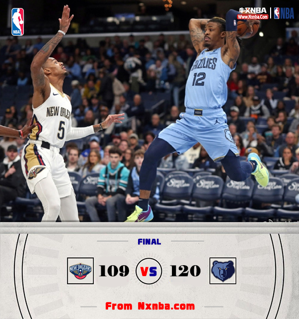 24直播网11月30日讯 NBA杯,灰熊主场迎战鹈鹕,本场比赛莫兰特复出,英格拉姆因伤缺阵,锡安继续不打。比赛开始,穆雷联手麦科勒姆撑起鹈鹕进攻,莫兰特上来活力十足,接连攻筐回应,随后他又接连送妙传带队建立主动权,首节灰熊领先4分,次节双方命中率短暂下降后展开拉锯战,穆雷有攻有传带队一度反超,但莫兰特连续冲击内线取分,阿尔达马和肯纳德接连3记三分半场稳住11分领先。下半场,墨菲还是没有手感,莫兰特带队守住双位数领先,随后双方展开拉锯战,墨菲压哨三分后鹈鹕还落后10分,末节墨菲助队追分,但莫兰特接连造杀伤取分,斯玛特抛投加三分连得5分稳住局势,灰熊牢牢领先十几分,最终灰熊120-109力克鹈鹕。