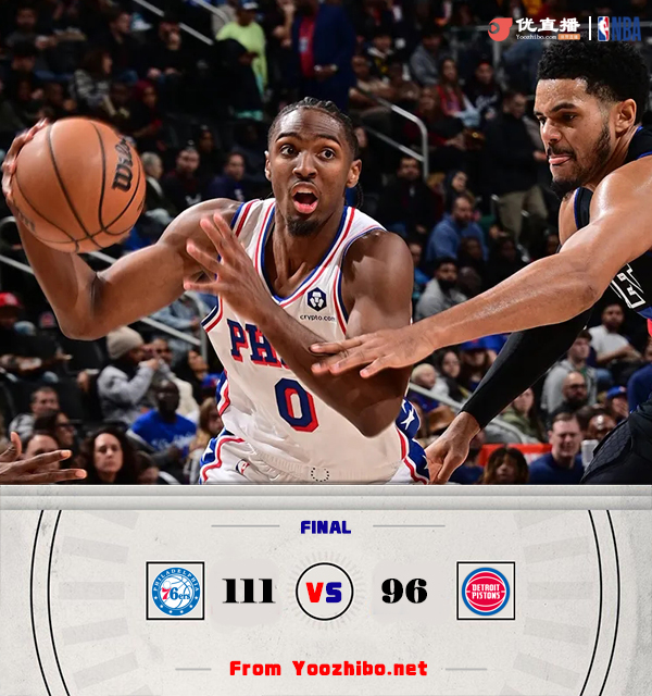 24直播网讯北京时间12月1日讯 NBA常规赛,活塞主场76人,活塞目前9胜12负排名东部第10位,76人则是2连败后3胜14负,排在东部第14位。本场比赛,乔治复出,恩比德继续缺阵。比赛开始,乔治接连助攻队友得分,但庄神抢篮板崴脚受伤,随后76人连续3记三分一波11-0直接建立主动权,76人替补也发力,首节便领先17分,次节76人进攻端有些停滞,艾维有攻有传带队追分,随后比斯利接连3记三分命中,活塞顺势追至个位数分差,半场活塞仅落后5分。下半场,马克西突然发力,里突外投连砍12分,同时还能串联,76人迅速拉开20分以上领先,活塞进攻端迟迟找不到状态,末节活塞基本上换上替补练兵,马克西带领76人牢牢保持住20分左右领先,最终76人111-96轻取活塞。