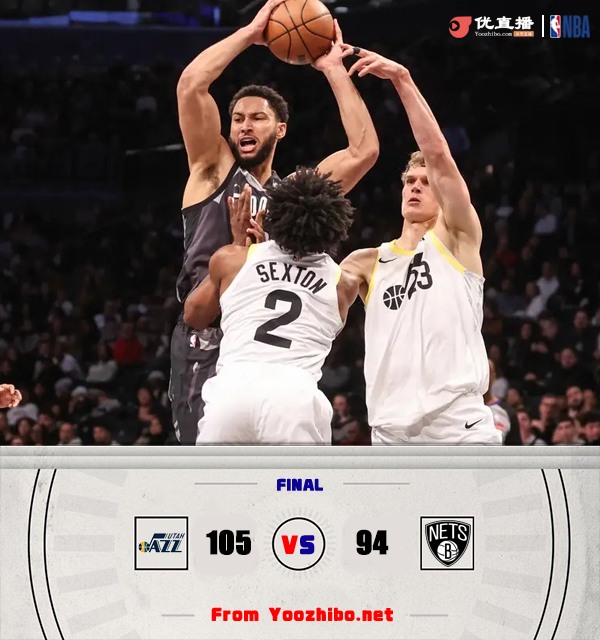 24直播网讯 北京时间12月22日讯 NBA常规赛继续开打,篮网和爵士迎来一场对决,首节之争双方状态势均力敌,篮网直到进入轮换阶段才以一波7-2的小高潮抢占先机;不过次节轮到爵士在拉锯战中突围,他们末段依靠连续四记三分送出14-2的攻势扭转局面并带着5分优势进入下半场。休息归来篮网状态持续走低,爵士在后半段送出15-6的攻势拉开两位数分差,这之后爵士稳扎稳打将大比分优势保持到最后。最终,爵士轻取篮网拿下比赛。
