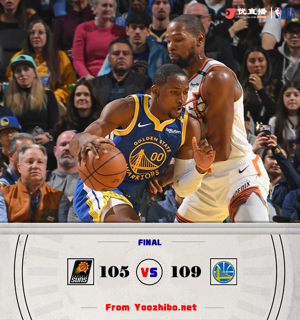 24直播网讯北京时间12月29日讯 NBA常规赛,勇士主场迎战太阳。勇士3连败目前仅排在西部第十一,太阳西部第十。布克缺阵,库里和追梦迎来复出。比赛开始,比尔手感火热4投全中独得10分,库里和库明加联手带队高效拿分强势反超,杜兰特连续强解拿分,次节勇士连续失误,太阳利用防守反击轰出26-7的进攻狂潮取得两位数领先,追梦连中三分止血,库里压哨命中,半场战罢太阳65-61领先勇士。易边再战,勇士一波7-0的夺回优势,此后双方陷入缠斗,比分交替领先,太阳持续发力占据主动,末节勇士打出10-1反超比分,双方争夺陷入白热化,关键时刻杜兰特和库明加各自两罚全中,太阳连续打铁,勇士罚球杀死比赛。最终,勇士109-105力克太阳,结束了自己的3连败。