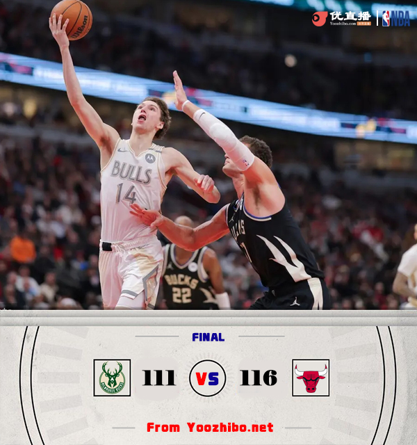 24直播网讯北京时间12月29日讯 NBA常规赛激战正酣,公牛和雄鹿两支东部球队直接对话,此前因小腿伤势和非新冠疾病缺席4场的利拉德此役复出,字母哥因生病继续缺阵。此役一上来公牛外线率先开张,雄鹿开局状态慢热,米德尔顿和波蒂斯短暂止血,公牛多点开花确立优势,首节结束时公牛领先8分,次节回来,雄鹿逐渐找到进攻感觉,利拉德连投带罚不断杀伤,大洛联手米德尔顿外线续上火力,雄鹿稳扎稳打缩小分差,半场战罢,雄鹿仅落后2分。易边再战后两队进攻火力放缓,利拉德连投带罚串联全队,公牛找回状态及时回应,双方你来我往比分紧咬,三节结束后雄鹿反超1分,末节决战,基迪突然发力连续取分,公牛迅速夺回优势,决胜时刻雄鹿连续不中,公牛连中罚球锁定胜局,最终公牛116-111力克对手终结3连败。