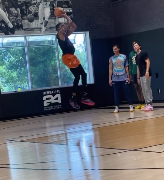 太阳球员杜兰特和奇才球员普尔合练,杜兰特身穿太阳队训练服,普尔则穿着一件花T恤,他们一起训练三分球,从曝光的视频中可以看出,他们的三分都是百发百中,杜兰特还苦练后仰跳投,普尔站在一旁观看。