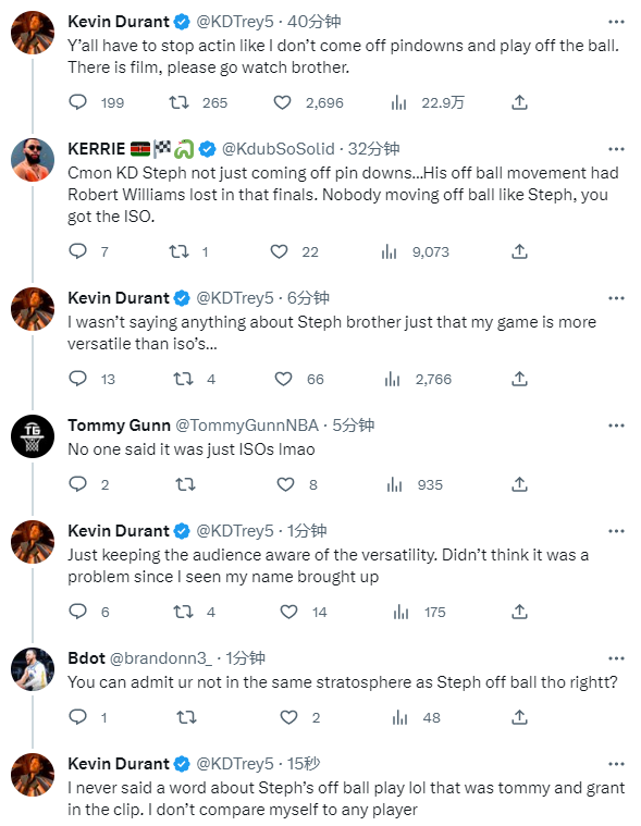 杜兰特回应:我并不是说任何关于兄弟库里的事情,我只是想说我的比赛中不是只用单挑