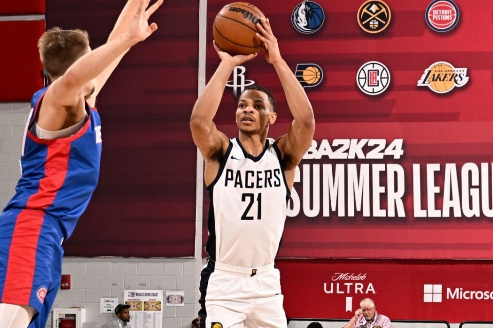 24直播网讯07月17日,步行者85-100不敌活塞,输掉了球队的最后一场夏季联赛。华裔后卫以赛亚-王发挥出色,他拿下全队最高的24分和3次助攻,投篮13中6,三分7中5,罚球11中7。活塞的25号秀萨瑟得到40分,创今年夏联得分新高。