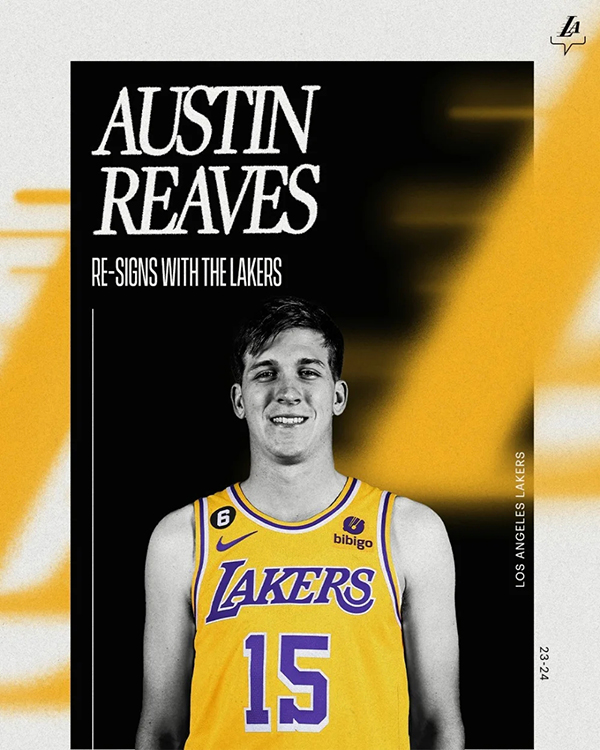 湖人官方宣布,球队正式续约奥斯汀-里夫斯,据此前报道,里夫斯和湖人达成的是一份4年5600万的合同,其中包含15%的交易保证金和最后一年的球员选项。