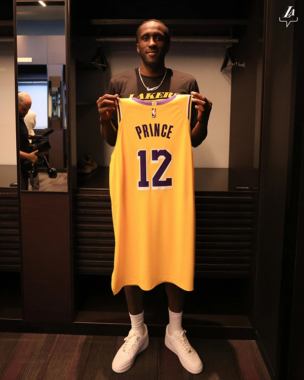 湖人官宣签约普林斯,欢迎新援来到洛杉矶,新赛季普林斯将身穿湖人12号球衣出战,普林斯正式亮相,并且在湖人更衣室手持12号球衣拍照。
