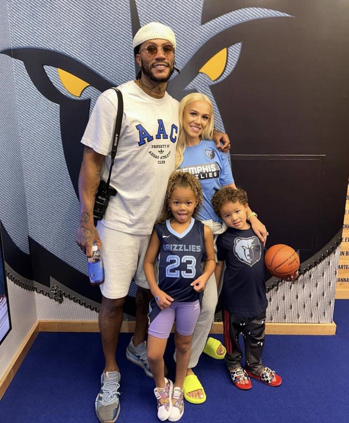 24直播网讯07月04日,灰熊新援德里克-罗斯正式宣布新赛季他将改穿灰熊队23号球衣,罗斯已经抵达孟菲斯,他一家四口合影,罗斯搂着爱妻,他的孩子则穿着灰熊23号。