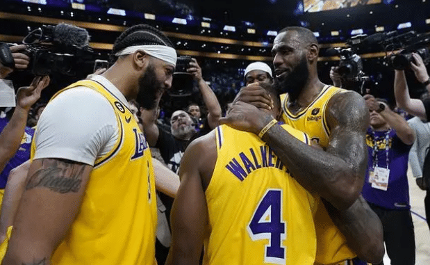 在西部半决赛G4,湖人险胜勇士夺得系列赛赛点,朗尼-沃克末节独砍15分成为湖人赢球的大功臣,赛后詹姆斯和浓眉抱着沃克疯狂庆祝。