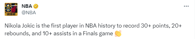 约基奇32+21+10刷爆历史第一纪录 打爆热火统治G3+离夺冠仅差2胜