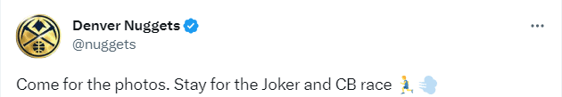 22-23赛季,约基奇带领掘金拿到西部第一的战绩,并且在季后赛接连淘汰森林狼、太阳和湖人从而杀进总决赛,约基奇全票夺得西决MVP。
