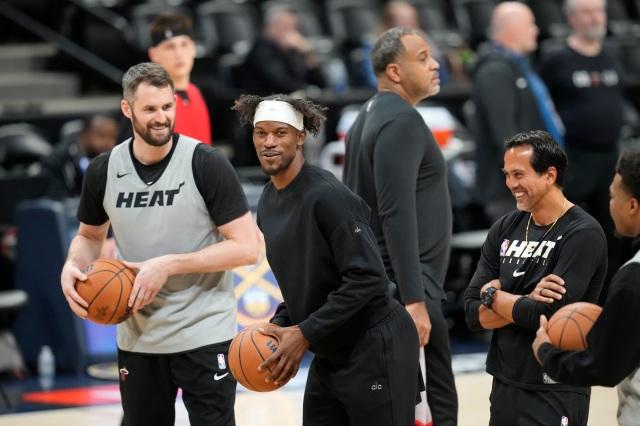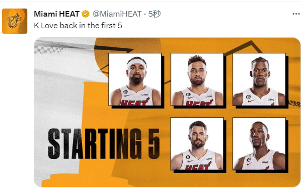 24直播网讯06月05日,总决赛G2一触即发,热火G2大变阵,官宣乐福顶替马丁重返首发阵容,搭配阿德巴约、文森特、斯特鲁斯和巴特勒首发出战;掘金则是延续原有的首发阵容,约基奇、穆雷、波普、小波特和戈登继续担任首发五虎。