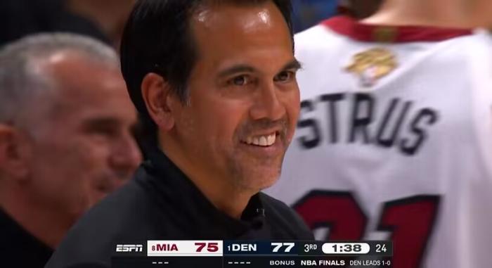 24直播网讯06月05日,NBA总决赛热火G2客场111-108险胜掘金,把系列赛大比分改写成1-1,热火攻克魔鬼客场,终结掘金今年季后赛主场9连胜的不败金身;总决赛G2裁判吹罚引争议,裁判漏吹巴特勒踩线助攻三分以及阿德巴约关键盖帽干扰球,另外约基奇造阿德巴约三分犯规以及疑似假摔也引热议。