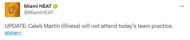 1.3亿希罗无法复出,热火大比分0-1落后还有坏消息,马丁因生病缺席了今天的球队训练,G2被列为出战成疑,即使可以出战,马丁的状态也可能受到很大的影响。