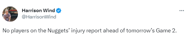 掘金队则是全员健康,没有球员在伤病名单上,而且掘金G2仍旧在主场作战,很明显,掘金把总比分改写成2-0的希望很大。