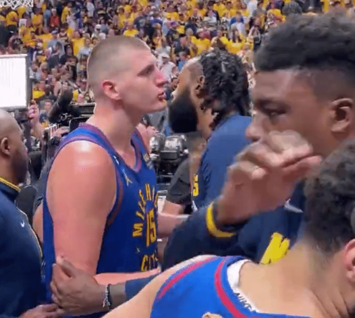 约基奇和队友亲吻庆祝:嘴对嘴都快亲上了 拿下G1仍直言不兴奋