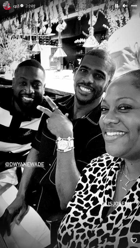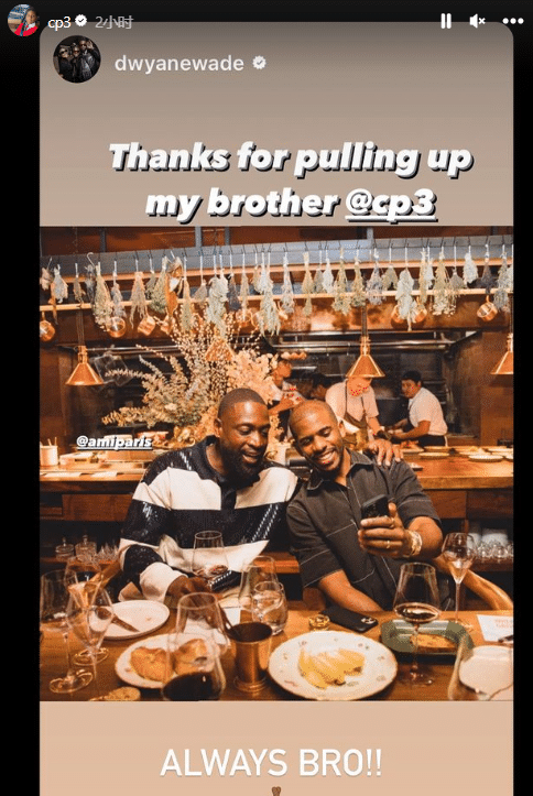 韦德晒出两兄弟共进晚餐的合影,写道:感谢招待,我的兄弟;保罗转发并且回复:永远的兄弟。