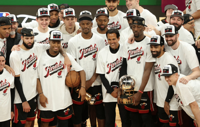 24直播网讯05月30日NBA总决赛对阵出炉,热火大战掘金,斯波和巴特勒率领的热火在东部决赛的抢七大战大胜凯尔特人,4-3晋级总决赛。斯波报了去年东决G7惜败给凯尔特人的一箭之仇,巴特勒赛后斩获东决MVP。这样本赛季NBA将注定创历史,热火夺冠将是首支黑八球队登上最高领奖台。掘金夺冠的话,将是队史第一次夺得冠军。