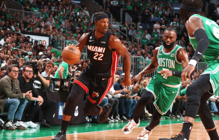 东决抢七,热火开场4-9落后,可绿军菜鸟主帅马祖拉居然主动暂停,如此神暂停打乱了球队的节奏,巴特勒和马丁带队11-2反超比分,随后马丁轰进三分,巴特勒再拿2分,第一节打完热火22-15领先7分,4-9开场后打出18-6攻击波。