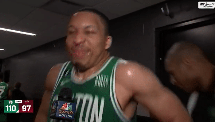 绿军众将回到更衣室,霍福德先是教杰伦-布朗玩剪刀石头布的游戏,布朗输了之后明显不服输,好像再说霍福德耍赖,格里芬等人哈哈大笑;之后霍福德又和怀特PK,怀特赢了伙夫,并且和斯玛特击掌庆祝;绿军更衣室内欢声笑语,赢球后全队的心情都很好。