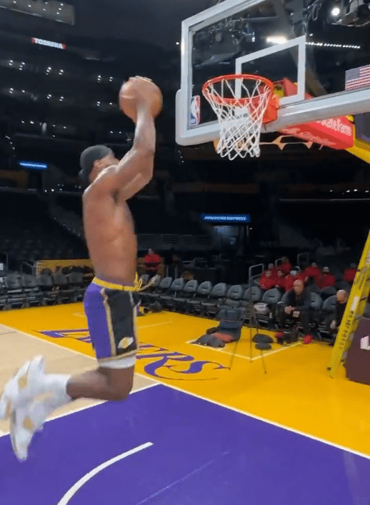 湖人和掘金西决G4赛前,詹姆斯提前几个小时来到球馆,身穿一套黑色服装、戴着棒球帽来到湖人主场,更换训练服后,詹姆斯在偌大的球馆中加练中投、三分球和后仰跳投,挥汗苦练,脱掉上衣自抛自扣结束备战;紧接着老詹前往健身房撸铁训练。