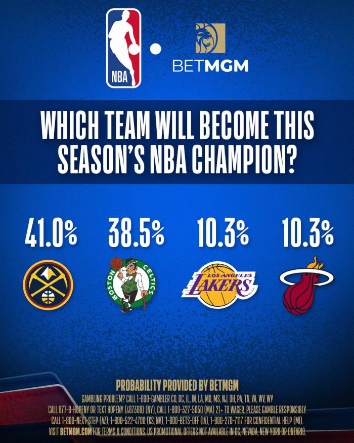 目前掘金众将已经飞往洛杉矶,NBA官方公布最新夺冠概率,掘金41%成为夺冠最大热门球队,凯尔特人38.5%,湖人和热火都是10.3%。