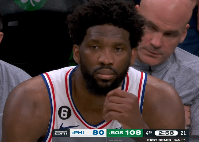 在总比分3-2领先的情况下,76人连续错失两次晋级东决的机会,抢七生死战,76人客场溃不成军,尤其是第三节,76人单节仅仅拿到10分,且单节10-33狂输23分,里弗斯坐在替补席双手捂脸;比赛早早沦为垃圾时间,哈登和恩比德两大核心的状态都十分糟糕,76人连续3年止步东部半决赛。