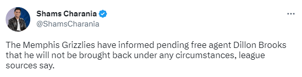 名记shams报道,灰熊曾在赛季初向狄龙提供了一份续约合同,但遭到了拒绝;如今灰熊首轮2-4被湖人淘汰出局后,在赛季总结大会时,灰熊管理层明确告诉狄龙,在任何情况下,他们已经决定都不会与其续约,双方达成一致并分道扬镳。