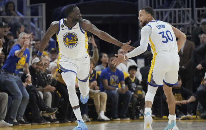 勇士险胜后,库里和格林激情撞胸庆祝,两人嘴里都喋喋不休;勇士这一场赢得太惊险,无论如何,获胜才是硬道理。