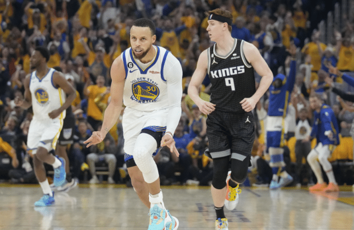 目前勇士2-2国王,若想以下克上淘汰国王,勇士至少需要赢下一个客场;G5天王山大战,库里有望打出更加疯狂的表现,今年季后赛四战,库里3次单场轰下30+,四战末节累计拿到44分且末节真实命中率高达62.3%。