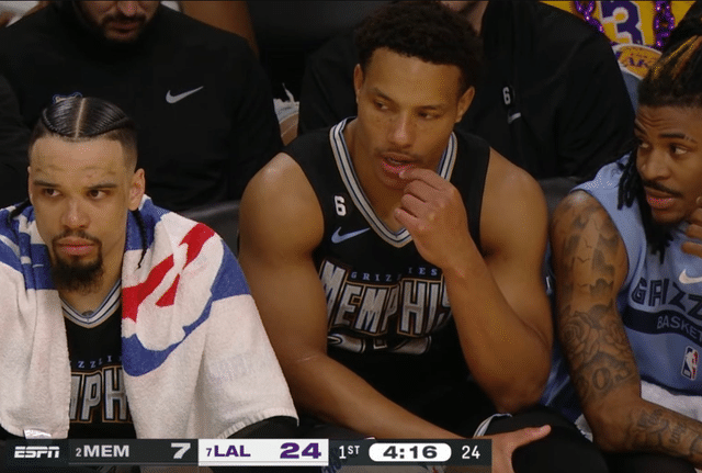 湖人三巨头的发挥非常出色,詹姆斯、戴维斯和拉塞尔各自都拿下8分,戴维斯还抢下8个篮板球。除此之外,替补席上的八村塁也拿下7分,延续此前的火热状态。而灰熊方面,莫兰特拿下4分,其余首发都挂零。整个第一节,灰熊25中3,全队都处于梦游状态。主帅詹金森多次叫出暂停,但也毫无用处。