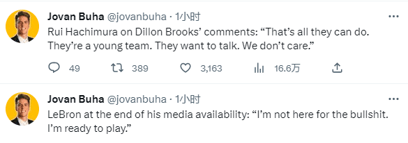 对于狄龙挑衅詹姆斯,八村塁回应:他们能做的也只有这些了,灰熊是一支年轻的球队,他们想聊聊,我们不在乎。我们需要做的是打好我们的比赛,并努力赢得比赛。