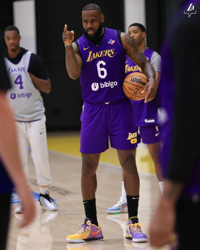 24直播网04月22日,湖人全队备战G3,官方晒出训练照,詹姆斯暴扣以及严肃地指导队友,浓眉持球背打,官方配文写道:着眼于第三场;湖人球迷请求詹姆斯下一场能在狄龙头上轰下40分。