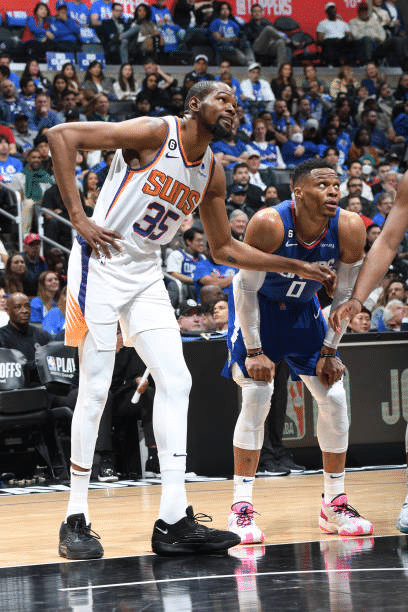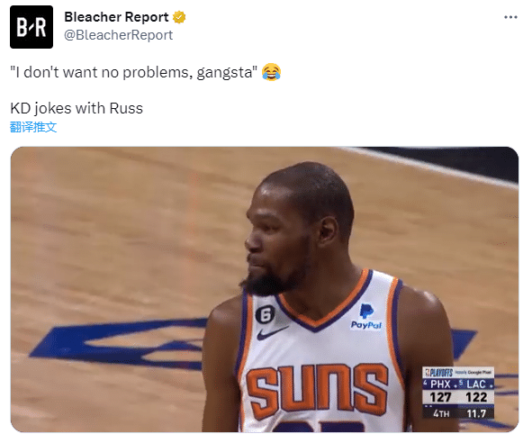 24直播网讯04月21日,NBA季后赛太阳G3击败快船,系列赛大比分2-1领先,布克状态火热,29投18中、三分7中3轰下45分7篮板3助攻3抢断2盖帽,攻防一体,关键2+1太蛮横;杜兰特15投8中贡献28分6篮板5助攻2抢断,关键时刻连续四罚锁定胜局,比赛期间杜兰特被冤枉一幕曝光,识破威少“诡计”猛缩手却难逃一劫;最后时刻杜兰特被凶狠撞倒后,KD冲威少开玩笑:我不想惹麻烦 地痞。