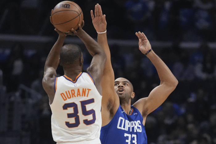 下半场,杜兰特和布克第三节带队领先到13分,快船继续追分,鲍威尔火力不减,威少爆发单节独砍15分,对飚杜兰特太精彩,不过太阳火力太猛,太阳单节40-34一直占上风,杜布单节合砍21分,布克单节又拿13分。