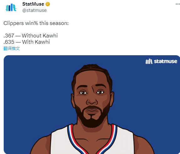 本赛季在莱昂纳德出战时,快船胜率为63.5%,而在缺少莱昂纳德时,快船胜率仅有36.7%;本赛季常规赛,当小卡和乔治同时缺席时,快船的进攻效率为106,投篮命中率为47.2%,这两项数据均为联盟最差。