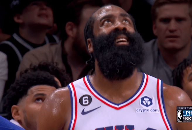 第三节最后阶段,哈登进攻时击打奥尼尔的关键部位,吃到二级恶意犯规直接被驱逐离场,恩比德一脸懵逼,哈登也是一脸不敢相信的样子;哈登离场,本场出战29分钟,15投8中拿到21分5篮板4助攻。
