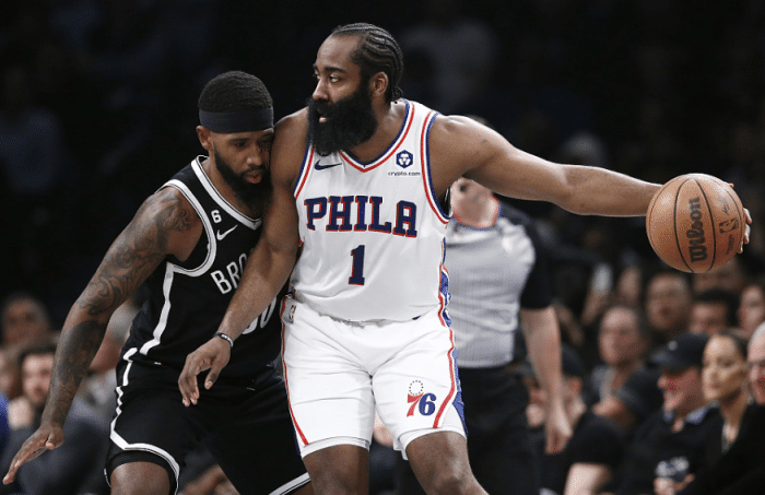 76人和篮网G3一战,费城上半场压制篮网,一度领先到13分,恩比德状态一般,半场5投2中仅仅拿到7分4篮板;哈登、哈里斯和马克西扛起76人进攻大旗,三人半场合砍37分,其中哈登第二节连中三球,与布里奇斯相撞膝盖,忍痛轰进三分。